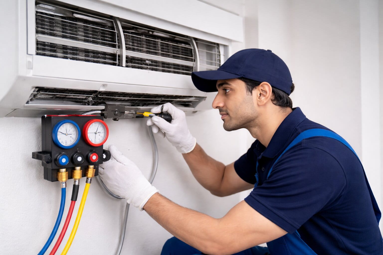 AC servicing includes filter cleaning, cooling coil wash, drain pipe cleaning, gas pressure check, electrical inspection and performance testing. Regular AC maintenance improves cooling efficiency and increases the lifespan of your air conditioner.
